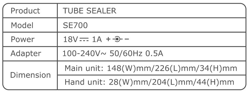 • Sealing unit cable is 1.8 meters(6 feet) long.